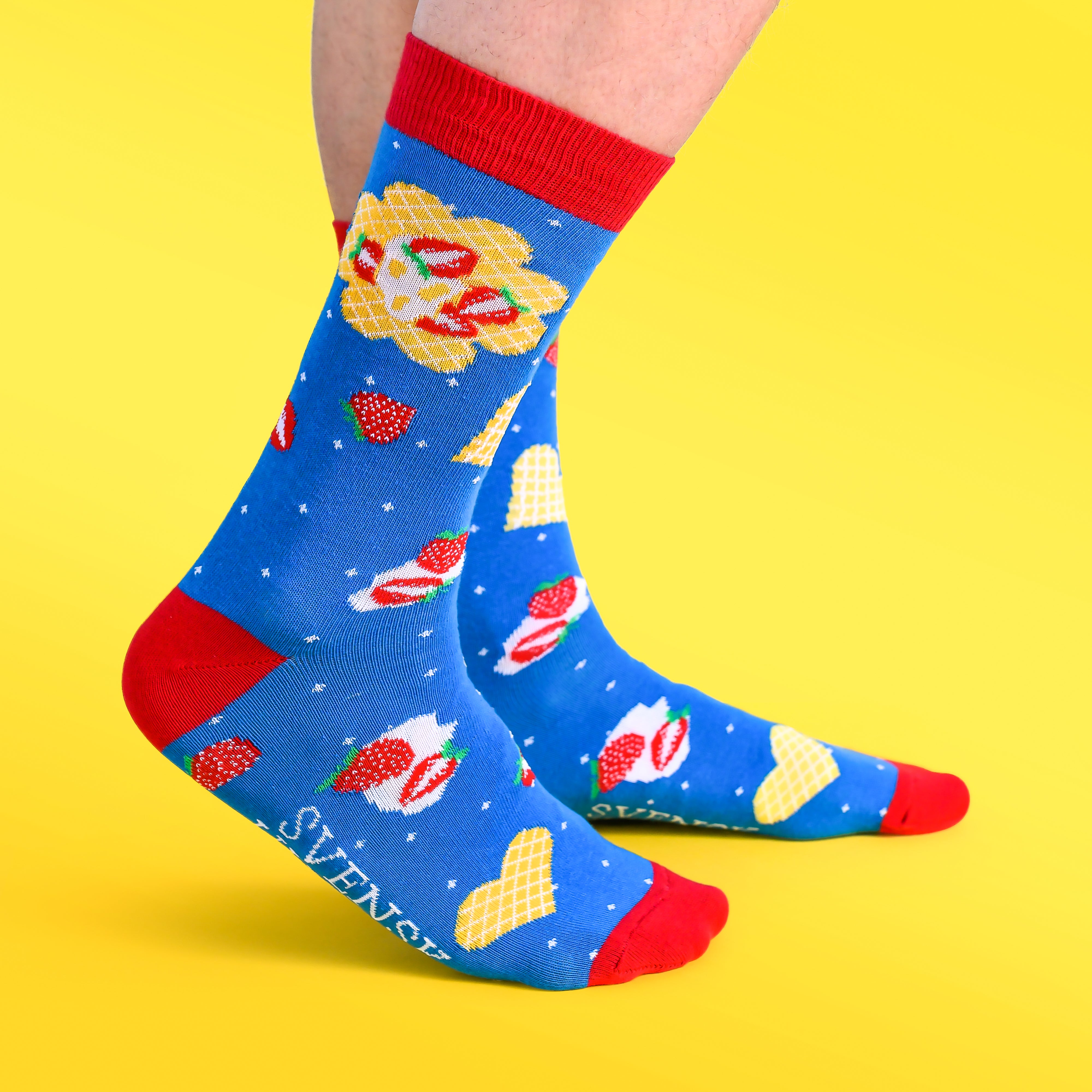 Jag trodde mest det var en kul grej, men strumporna är faktiskt riktigt bra gjorda. De sitter bra och håller formen efter tvätt. Våfflorna är en fin detalj. Rekommenderar!